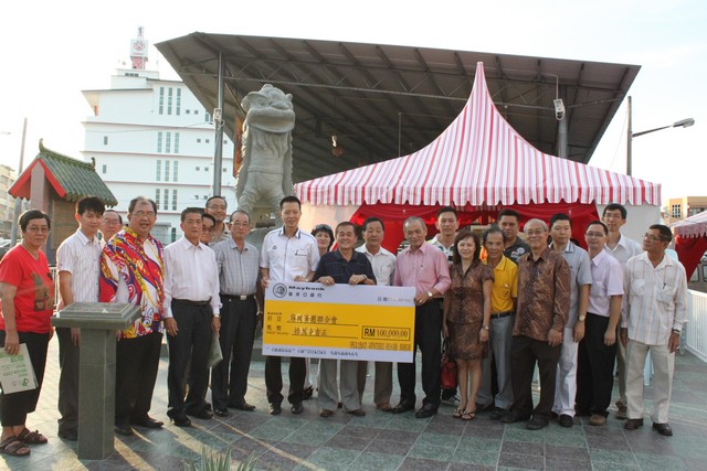 李俊滽代表柔佛州州务大臣移交支票予麻坡关圣宫龙狮团